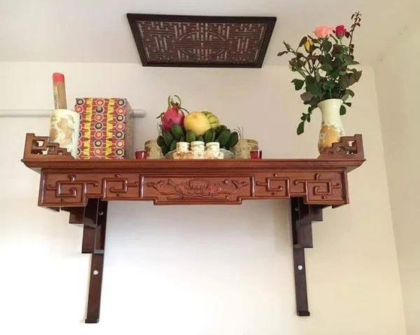 Nếu như gian bếp nhà bạn nhỏ hẹp hoặc là dùng máy hút mùi thì gia chủ có thể đặt bàn thờ ông Táo ở bên trên. Không nên đặt bàn thờ Ông Táo ở vị trí quá cao vì sẽ gây ra bất tiện trong quá trình thắp hương hay là khấn vái. Không nên đặt bàn thờ ở sát trần vì hương sẽ có thể khiến cho trần bị ám vàng hoặc là gây cháy.